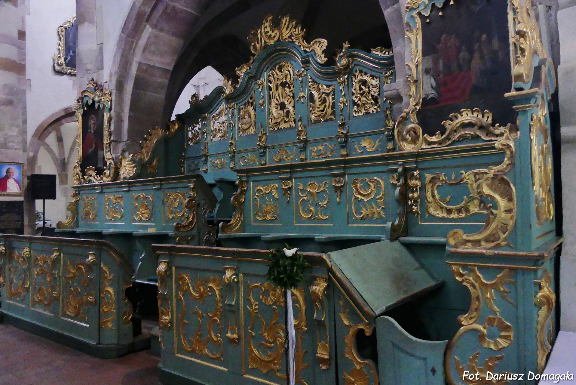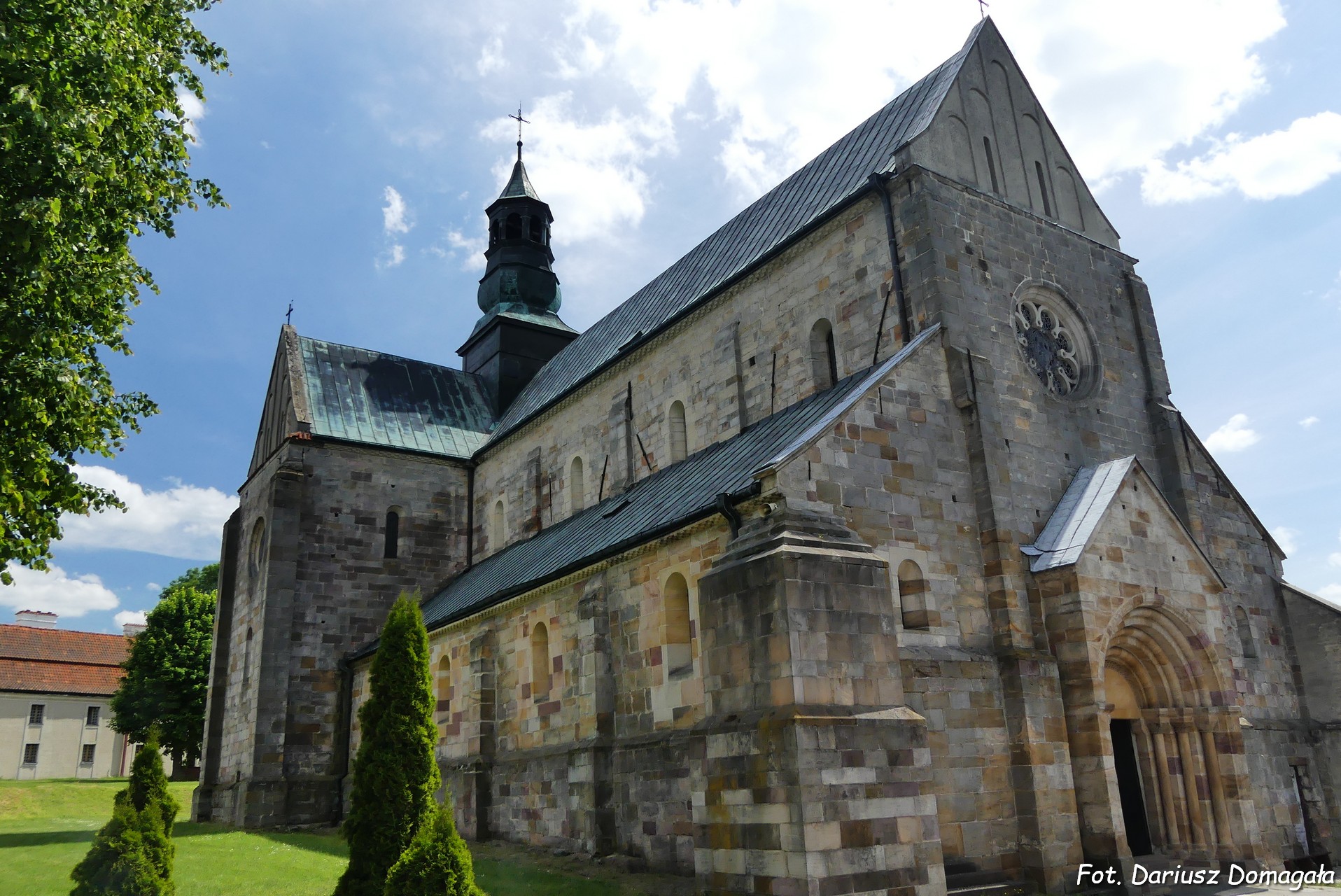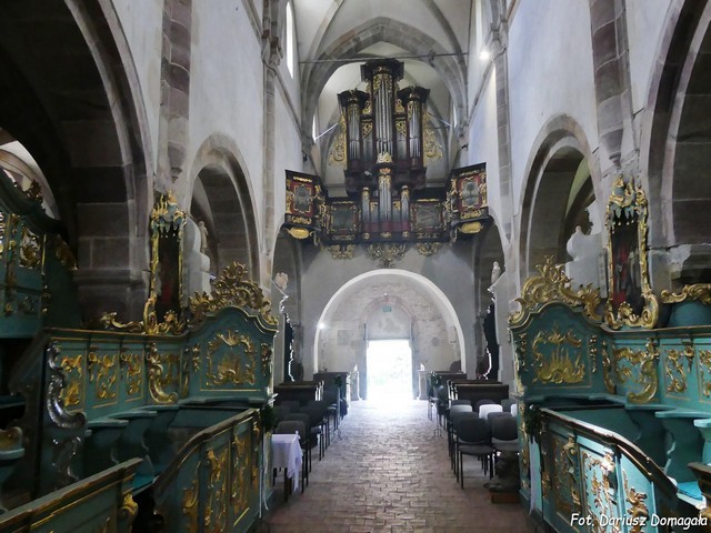 piaskowca szydłowieckiego, kamienne są też wewnętrzne elementy konstrukcyjne i dekoracyjne, sklepienia i