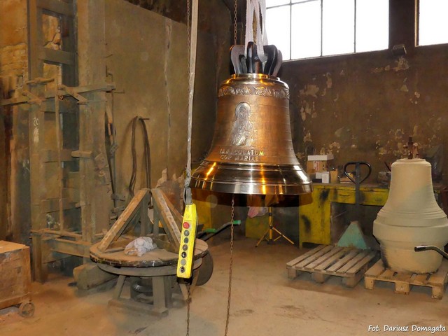 Firma zajmuje się przede wszytkim odlewaniem i konserwacją dzwonów, ale wykonuje także płaskorzeźby czy tablice pamiątkowe. Oto niektóre z wykonanych w ludwisarni dzwonów: dzwon "Serce Łodzi" odlany dla archikatedry św. Stanisława Kostki w Łodzi, dzwon "Kopernik" dla bazyliki konkatedralnej św. Jakuba w Olsztynie, zestaw dzwonów dla kościoła św. Michała Archanioła i św. Stanisława Biskupa w Krakowie, zestaw dzwonów dla bazyliki św. Krzyża w Warszawie i wiele innych... Historia historią, ale jak właściwie robi się te dzwony? Podczas tworzenia formy dzwonu najpierw buduje się rdzeń, czyli jej wewnętrzną część. Zbudowany z cegieł stożek pokrywa się grubymi warstwami mieszanki składającej się głównie z gliny. Glinę nakłada się oczywiście ręcznie. Każda kolejna warstwa gliny musi dokładnie wyschnąć przed nałożeniem następnej. Wraz z kolejnymi warstwami początkowo stożkowa forma przybiera kształt wewnętrznej powierzchni przyszłego dzwonu. Przy pracy ludwisarze posługują się szablonem wyciętym z metalu w pożądany kształt. Po zakończeniu prac warstwę izoluje się i rozpoczyna pracę przy kolejnej warstwie zwanej dzwonem fałszywym. Ta część odpowiada kształtem przyszłemu dzwonowi i składa się również z kolejnych warstw gliny nakładanej pędzlem. Dzwon fałszywy pokrywa się łojem zwierzęcym oraz umieszcza na nim wykonane z wosku napisy, ornamenty i wizerunki dokładnie takie, jakie widoczne będą na gotowym odlewie. Są one przygotowywane ręcznie. Proces ten nazywa się "ubieraniem" formy. Przygotowaną w ten sposób powierzchnię pokrywa się wieloma cienkimi warstwami rzadko rozrobionej gliny tak, by masa otuliła wszystkie przymocowane dekoracje. Kolejne warstwy gliny, które pokrywają dekoracje zaczynają składać się na zewnętrzną część formy, tzw. kapę. Kolejne powłoki zabezpieczają dzwon fałszywy, a forma pęcznieje i traci precyzyjny kształt. Po zakończeniu budowy formę się suszy, a wysoka temperatura jakiej zostaje poddana wytapia zamknięte między warstwami gliny elementy woskowe (jest to tzw. metoda "na wosk tracony"), pozostawiając w powłoce luki i wgłębienia odpowiadające przyszłym napisom, wizerunkom czy ornamentom. Potem formę rozkłada się na trzy kolejno budowane części: rdzeń, dzwon fałszywy i kapę i niszczy się środkową. Rdzeń i kapę łączy się ponownie ze sobą ze szczególną dbałością o precyzyjne dopasowanie, dołącza się osobno przygotowaną formę korony. Całość zakopuje się w jamie odlewniczej, czyli w wykopanej dziurze poniżej poziomu gruntu. Wszystko obsypuje się ziemią, która zostaje mocno ubita by całość ustabilizować. Teraz można już przystąpić do odlewu dzwonu. Najpierw rozgrzewa się piec, potem wrzuca się metale: cynę (22%) i miedź (78%), które po roztopieniu połączą się w płynny brąz. Roztopiony metal o temperaturze około 1200 stopni kieruje się specjalnymi rynienkami do formy, do której wlewa się on przez otwór pozostawiony w górnej części. Odlany dzwon, wciąż zabezpieczony wieloma warstwami gorącej gliny, zostawia się w ziemi na kilka dni, aby powoli stygł. Potem wydobywa się go, rozbija otaczającą go glinę, czyści i poleruje, by metal, który przybrał kształt dzwonu był gładki i błyszczał oraz by wyraźnie było widać dekoracje. Na koniec dołącza się elementy techniczne pozwalające na jego pracę, czyli serce i okucie. Ludwisarnia w Taciszowie posiada zastrzeżony przez Urząd Patentowy słowno-graficzny znak towarowy umieszczany na każdym dzwonie. Technika wykonywania dzwonów używana w taciszowskiej ludwisarni została niedawno wpisana na Krajową Listę Niematerialnego Dziedzictwa Kulturowego prowadzoną przez Ministerstwo Kultury i Dziedzictwa Narodowego. Co roku w ludwisarni produkuje się około 100 dzwonów ważących od 100 kg do 2,5 tony. Ludwisarnię można oczywiście zwiedzić, choć ze względów bezpieczeństwa nie jest to możliwe w dni, kiedy odlewa się dzwony. Ludwisarnia znajduje się w Taciszowie (gmina Rudziniec, powiat gliwicki, województwo śląskie). Wieś licząca około 500 mieszkańców leży w odległości około 17 km na północny zachód od Gliwic. 03.2019 Na podstawie stron internetowych: Strona ludwisarni Felczyńskich oraz Ludwisarnia Felczyńskich w Wikipedii. Aktualizacja 09.03.2019 |