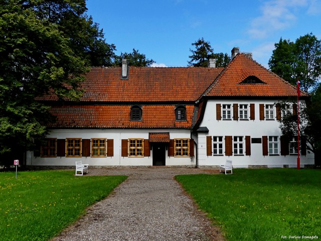 Później majątek dość często zmieniał właścicieli, aż w 1868 roku trafił w ręce rodziny Dahlweid. W 1906 roku spłonęła wschodnia część dworku. Dahlweidowie nie odbudowali dworku w poprzedniej formie, ale w 1912 roku gruntownie go przebudowali nadając mu formę dwukondygnacyjnej budowli przykrytej polskim łamanym, czterospadowym dachem. Majątek pozostawał w rękach rodziny Dahlweid do 1945 roku. Po II wojnie światowej majątek rozparcelowano, a w dworku mieściły się mieszkania, biura, szkoła podstawowa czy Uniwersytet Ludowy. W latach 1977-1978 przeprowadzono gruntowną renowację budynku adaptując go na potrzeby muzeum. W ramach prac przywrócono wygląd budynku z II połowy XVIII wieku, a pomieszczeniom nadano wystrój i wyposażono zgodnie z tradycją polskich dworków szlacheckich (fot.) (fot.). Wokół dworku rozciąga się zabytkowy park, w którym rosną bardzo stare drzewa, wśród nich "Dąb Wybickiego" mający ponad 400 lat o obwodzie pnia 680 cm i wysokości 27 m, 300-letnia lipa rosnąca obok dworku oraz 200-letni buk czerwony (fot.). Na południe od dworku stoi dawny budynek gospodarczy, dziś pełniący funkcje oświatowe oraz dawna stajnia, dziś pawilon wystaw czasowych. Od strony południowo wschodniej znajduje się budynek dawnej chlewni, dziś hydrofornia i kotłownia. Muzeum Hymnu Narodowego w Będominie zostało powołane do życia 17 lipca 1978 roku. W muzeum gromadzone są pamiątki po twórcy polskiego hymnu - Józefie Wybickim, dokumenty dotyczące historii Mazurka Dąbrowskiego, prezentowane są także elementy wyposażenia dworu z XVIII i XIX wieku. Zbiory obejmują meble, dywany, obrazy i kilimy o tematyce patriotycznej, broń, biżuterię patriotyczną z okresu powstań narodowych, medale pamiątkowe, karty pocztowe o charakterze patriotycznym, dzieła literackie i plastyczne inspirowane naszym hymnem. Najcenniejszą kolekcją muzeum są muzykalia patriotyczne - śpiewniki i nuty polskich pieśni, słowa hymnów innych państw wzorowane na polskim hymnie, różne wersje Mazurka Dąbrowskiego powstające w XIX wieku, pozytywki, płyty gramofonowe z nagraniami polskich pieśni, gramofony z początku XX wieku (w tym unikatowy gramofon miniaturowy i dwie miniaturowe płyty z nagraniem hymnu). Jesienią 2013 roku w pobliżu muzeum zainstalowany został 5-metrowy pomnik orła, którego skrzydła tworzy około 200 starych kos (fot.). Muzeum organizuje również imprezy plenerowe: "Bieg Mazurka Dąbrowskiego", "Majówkę z Józefem Wybickim" czy "Batalię Napoleońską". W 2015 roku, dzięki dotacji Ministerstwa Kultury i Dziedzictwa Narodowego, zmodernizowano wystawę stałą. Wystawa została podzielona na dwie odrębne ekspozycje: "Józef Wybicki i jego czasy" oraz "Losy Mazurka Dąbrowskiego". Wątkiem łączącym obie części ekspozycji jest historia Mazurka Dąbrowskiego od jego powstania jako Pieśń Legionów Polskich we Włoszech, poprzez czas rozbiorów, odzyskanie niepodległości, ustanowienie Mazurka hymnem, aż po czasy II wojny światowej i czasy współczesne. Pierwsza z wystaw, zajmująca cztery sale, ilustruje życie Józefa Wybickiego na tle epoki, czyli dziejów Polski w II połowie XVIII i na początku XIX wieku. Dwie sale, alkierz i sala kominkowa, wiernie odtwarzają wnętrze pomorskiego dworku szlacheckiego (fot.) (fot.). Druga wystawa, urządzona w nowszej części dworku, przedstawia dzieje Mazurka Dąbrowskiego. Prezentowane są różne wersje pieśni, akty prawne stanowiące Mazurka hymnem państwowym, obrazy, grafiki, tkaniny, broń, biżuteria patriotyczna, zbiorki pieśni patriotycznych, bogata kolekcja kart pocztowych itd. W jednej z sal można wysłuchać różnych wersji Mazurka Dąbrowskiego w różnych, czasem zaskakujących interpretacjach, śpiewanych przez chóry oraz współczesne zespoły i wokalistów. Muzeum stanowi oddział Muzeum Narodowego w Gdańsku. Wstęp płatny. Będomin leży w gminie Nowa Karczma, powiecie kościerskim, województwie pomorskim. Wieś leży w odległości około 11 km na wschód od Kościerzyny. W pobliżu Będomina przebiega droga wojewódzka nr 221. Według danych z roku 2006 miejscowość liczyła około 150 mieszkańców. 09.2016 Na podstawie stron internetowych: Muzeum Hymnu Narodowego w Wikipedii, Strona Muzeum Hymnu Narodowego w Będominie oraz informatora Muzeum Hymnu Narodowego wydanego przez Towarzystwo Przyjaciół Muzeum Hymnu Narodowego w Będominie. Aktualizacja 14.09.2016 |