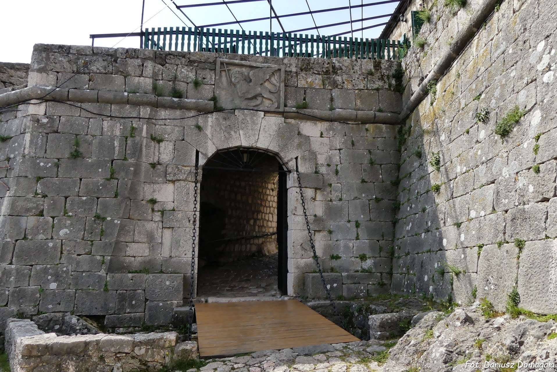 Masywne drzwi prowadzące do twierdzy zbudowane są w stylu barokowym. Nad drzwiami znajduje się symbol Republiki Weneckiej, czyli