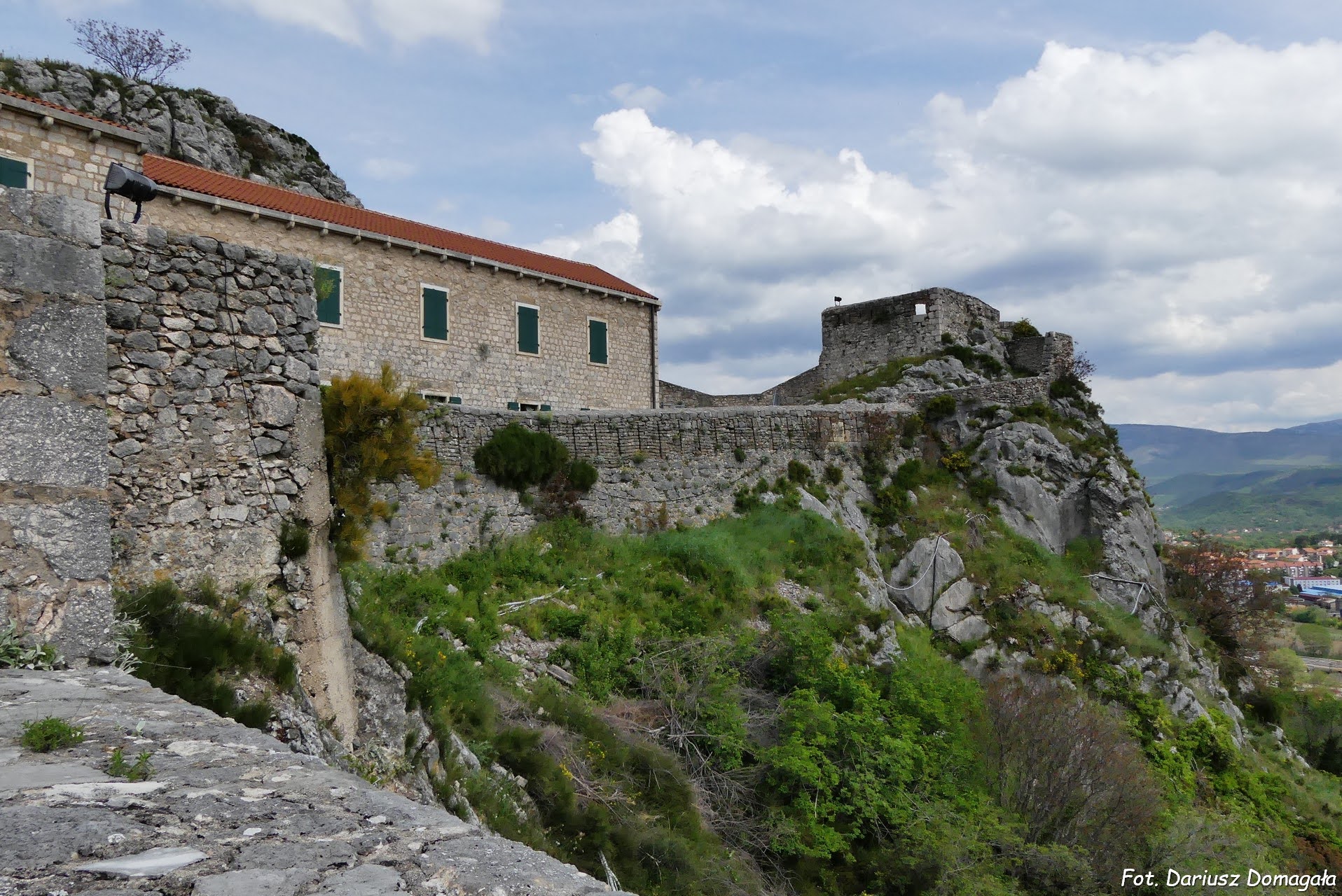 broniona od strony zachodniej przez kręty mur, który wznosi się nad kanionem rzeki Krka. Od strony południowej otoczony