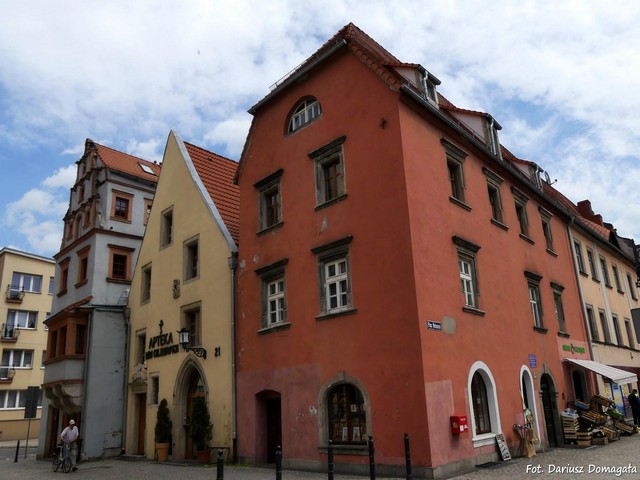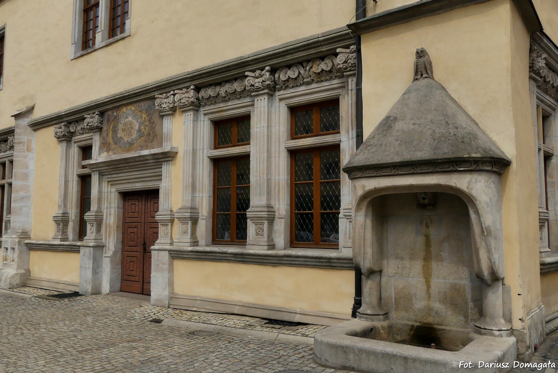 trzech zabytkowych kamienic w rynku. Utrzymany w stylu późnego gotyku z elementami renesansu, dwukondygnacyjny.