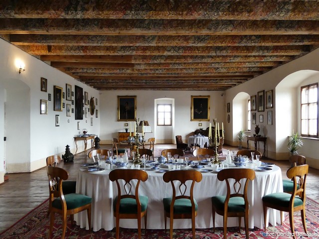 Trasa obejmuje reprezentacyjne pomieszczenia na pierwszym piętrze zamku z historycznymi wnętrzami z okresu