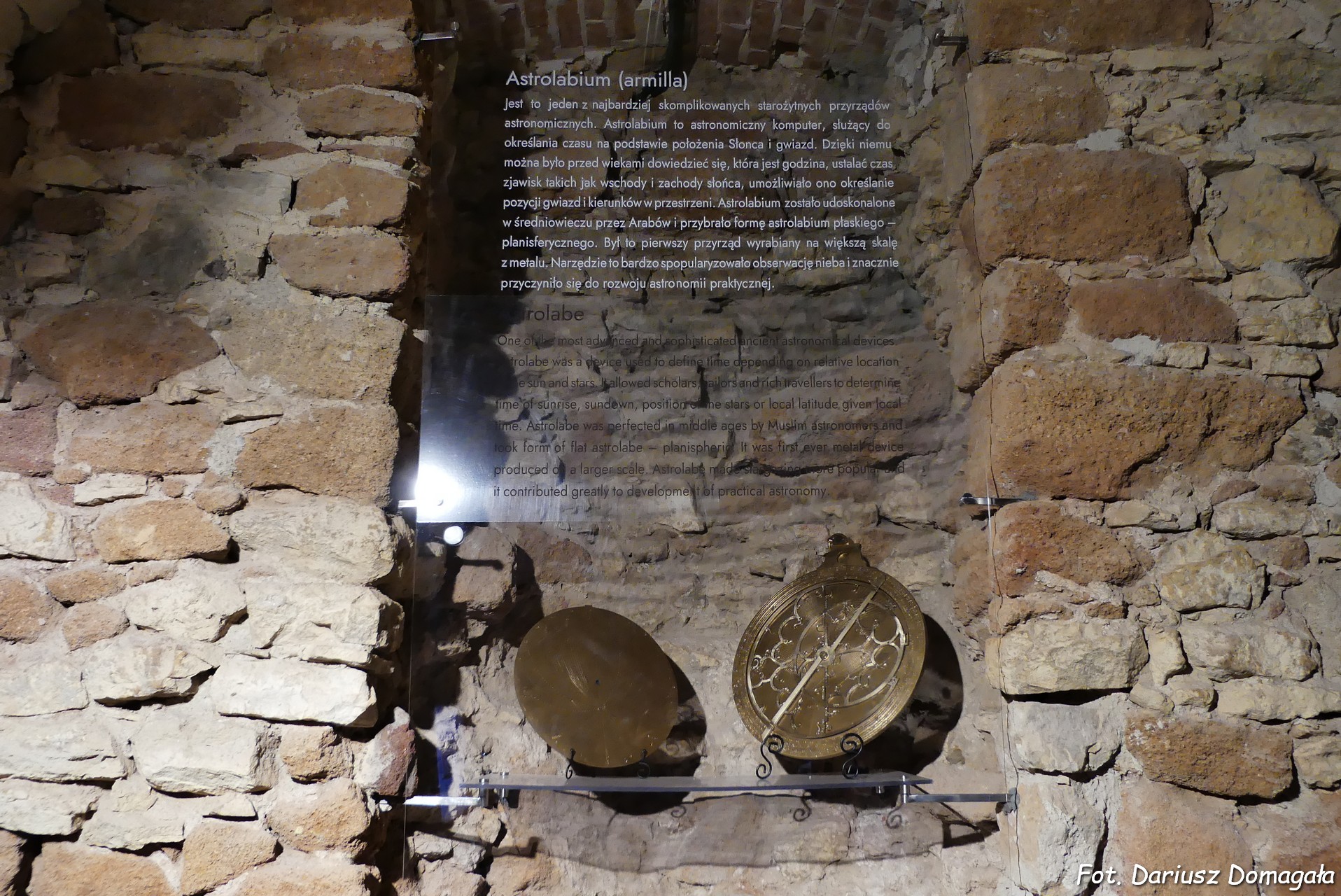 Nie istniejący już dziś ratusz w Olkuszu powstał na początku XV wieku i był budowlą gotycką z miejscowego, czerwonego kamienia, zwanego zlepieńcem parczewskim. Była to wówczas jedna z największych budowli tego typu w całej Polsce, większa nawet niż ratusz w Krakowie. Ratusz posiadał wysoką wieżę zegarową. Na parterze mieściła się kancelaria i sala sądowa, na piętrze zaś sala posiedzeń rady miejskiej, skarbiec i archiwum. W 1547 roku w ratuszu gościł król Zygmunt August, a w 1787 roku król Stanisław August Poniatowski. Ratusz rozebrano niestety w 1825 roku, a piwnice zostały zasypane. Na mury piwnic ratusza natrafiono w 2011 roku i wówczas władze miasta podjęły decyzję o ich adaptacji na potrzeby podziemnej trasy turystycznej. W piwnicach, które zostały przystosowane do zwiedzania można zapoznać się z wystawą, która przedstawia historię Olkusza nazywanego kiedyś Srebrnym Miastem, ze względu na sięgające średniowiecza tradycje wydobycia rud srebra i ołowiu. Prezentowane są burzliwe dzieje miasta w oparciu o mapę, która pokazuje rozwój terytorialny miasta i górnictwa. W kolejnym etapie przenosimy się do Olkusza z czasów największej świetności, czyli na koniec XVI wieku oglądając dużą, przestrzenną makietę miasta z tego okresu. Na makiecie można podświetlić najważniejsze budynki, jakie znajdowały się w mieście, a korzystając z ustawionych dookoła prezenterów poznać ich historię. Można także zobaczyć trójwymiarowy model ratusza. Dzięki dotykowym prezenterom multimedialnym można szczegółowo poznać historię miasta i jego mieszkańców, a także zobaczyć stare dokumenty, ryciny i mapy. W tym miejscu można także zobaczyć replikę astrolabium, urządzenia astronomicznego, które należało niegdyś do słynnego olkuskiego astronoma i astrologa Marcina Bylicy (fot.). W piwnicach dawnej wieży ciśnień wzniesionej na początku XX wieku prezentowane są filmy poświęcone m.in. powstaniu rud ołowiu i srebra, słynnym olkuskim astronomom, czy niezwykłym zabytkom olkuskiego kościoła św. Andrzeja. Część ekspozycji pokazuje i opowiada historię samego ratusza będącego siedzibą władz miasta, kancelarii i więzienia miejskiego. Szczególną atrakcją jest także hologram Stanisława Amendy, olkuskiego mieszczanina pochodzenia włoskiego, który opowiada o cudzoziemcach mieszkających niegdyś w Olkuszu. Osobne miejsce poświęcono herbowi Olkusza, którego najstarszy wizerunek pochodzi z 1386 roku. To jeden z najstarszych w Polsce herbów miast górniczych. Elementem godła herbu jest górnicza kopaczka. Druga cześć podziemnej trasy została zlokalizowana w piwnicach dawnego Kwartału Królewskiego. Mieściła się tu siedziba żupnika, urzędnika królewskiego zarządzającego miejscowym górnictwem, stąd nazwa Kwartał Królewski. Na przełomie VI i XVII wieku (1579-1601) znajdowała się tu królewska mennica. W czasach, gdy olkuskie górnictwo podupadło, budowle wyburzono, a Kwartał Królewski zajął powstały w 1828 roku gmach starostwa. Zbudowano go z materiału pochodzącego z rozebranego wówczas ratusza oraz klasztoru augustianów. W tym właśnie budynku znajduje się wejście do drugiej części podziemnej trasy. Budynek dawnego starostwa został wyremontowany w latach 2018-2020, a jego piwnice zaadaptowane na podziemną wystawę. Ze względu na to, że znajdowała się tu siedziba olkuskich władz górniczych, poświęcona została górniczym i hutniczym tradycjom Olkusza, a także mennicy, jaka działała w tym miejscu na przełomie XVI i XVII wieku. Jedną z atrakcji jest przestrzenna makieta pokazująca, jak w ciągu wieków rozwijały się olkuskie kopalnie. Możemy tutaj zobaczyć podziemne wyrobiska, jak i obiekty na powierzchni. Zaprezentowane zostały maszyny używane w kopalniach, jak kierat, czy tzw. paternoster. Są także prezentowane wielobarwne rudy ołowiu i srebra. Część ekspozycji poświęcona jest metalurgii, gdzie można zobaczyć repliki pieców używanych do wytopu ołowiu i srebra. Ekspozycję uzupełniają kopie archiwalnych rycin pokazujących wytop metali. Wprawiając w ruch modele i repliki dawnych urządzeń górniczych, takich jak m.in. kierat, płuczka, śruba Archimedesa czy paternoster, możemy łatwo przekonać się, jak działały dawne kopalnie. Znajduje się tu również pracownia probiercza, w której badano jakość wytopionych metali i wykonanych z nich monet. W gablotach prezentowane są przedmioty znalezione podczas prac archeologicznych w piwnicach dawnego kwartału królewskiego. Są tutaj gliniane misy, dzbany i garnki, a także fragmenty przepięknych wielobarwnych kafli piecowych. W miejscu, gdzie znajdował się tzw. miedzuch, czyli wąska uliczka pomiędzy kamienicami, jest korytarz obudowany drewnianymi belkami. Nawiązuje on do olkuskich sztolni, które umożliwiały grawitacyjny odpływ wody z kopalni. Ekspozycja przedstawia także handel olkuskim ołowiem. Poza prezenterami przybliżającymi kierunki i sposób eksportu ołowiu są również wagi, w których umieszczono cztery podobnej wielkości przedmioty z różnych materiałów. Za pomocą dźwigni można przekonać się, jak ciężki jest ołów i jego rudy. Obok prezentowana jest replika wagi i drewnianego żurawia. Prezentowane są także narzędzia używane przez olkuskich górników i hutników, m.in topór, młotek, obcęgi, fragment kilofa, a także przedmioty codziennego użytku. Można też zobaczyć oryginalne piszczałki organów, które wykonywano z ołowiu, a później ze stopu ołowiu i cyny. Jednym z ciekawszych miejsc w podziemiach jest "Srebrna komnata". Można w niej zobaczyć replikę Srebrnego Krzyża Gwarków Olkuskich (fot.), którego oryginał znajduje się w olkuskiej bazylice. Krzyż został ufundowany i przekazany do kościoła przez miejscowych gwarków na początku XVII wieku. W tej części ekspozycji opowiedziano o historii srebra od starożytnośc