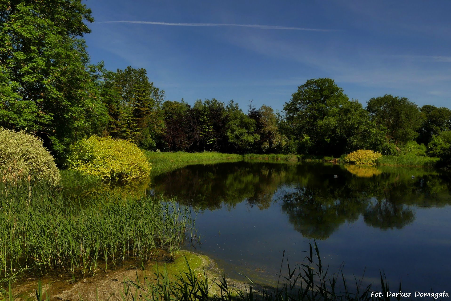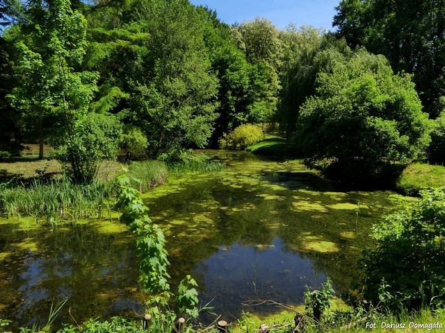 derenie, miłorzęby, skrzydłorzech, olsze, jodły, brzozy, tulipanowiec i kaliny. W pobliżu pierwszego, najmniejszego stawu,