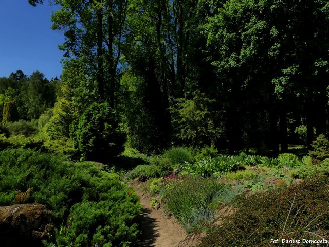 Posadzono tu liczne odmiany karłowych świerków, sosen i jodeł oraz kolekcję odmian jałowców. Rosną tu