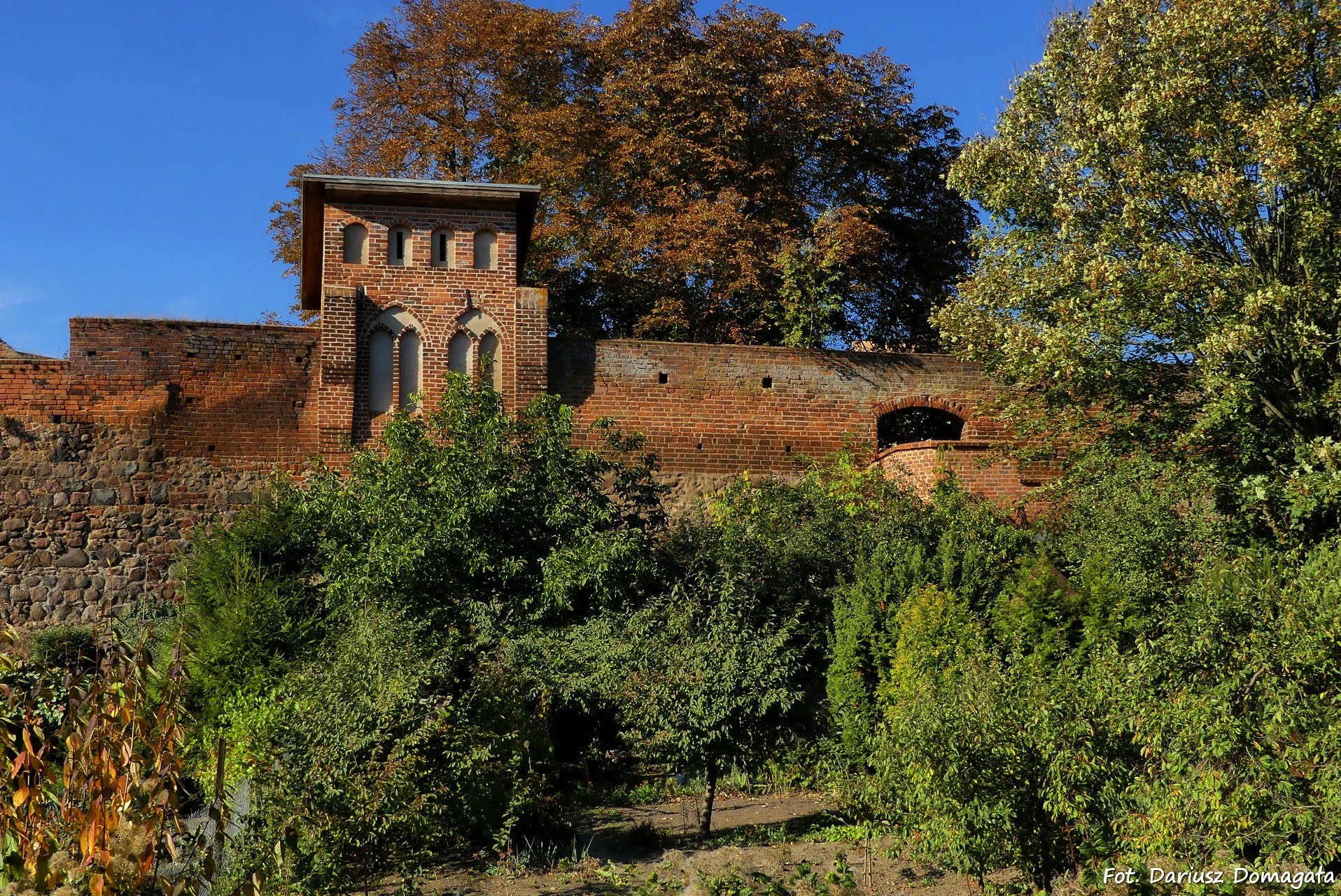 do wysokości muru obronnego, obrośnięte od zewnątrz bluszczem.