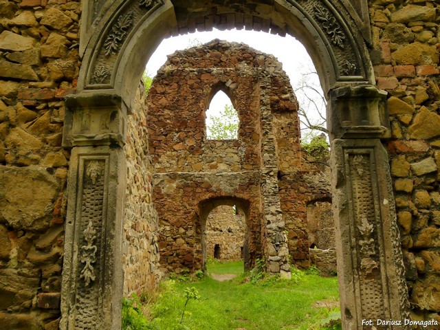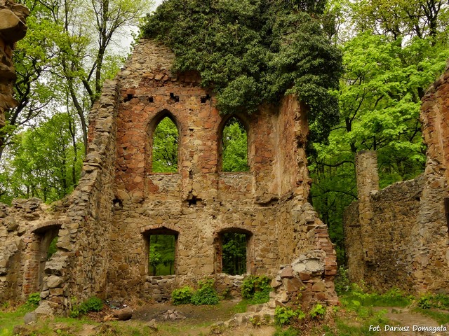 W 1509 roku wraz z całą okolicą zakupił go ród Hochbergów. W latach 1794-1797 właściciel zamku Książ Jan Henryk VI von Hochberg zlecił architektowi Christianowi Tischbeinowi urządzenie otoczenia zamku Książ. W ramach tego przedsięwzięcia miano też przebudowć istniejące pozostałości dawnego zamku. W ten sposób na murach starej warowni powstały stylizowane na gotyk romantyczne ruiny. Nowy zamek otoczono fosą i murem obronnym, a wejście do niego prowadziło przez bramę z dwoma wieżyczkami. Zespół zamkowy składał się z zamku właściwego, w kształcie zbliżonym do trójkąta oraz dwóch trójkątnych przedzamczy położonych jeden za drugim na zachód od zamku właściwego. W budynku głównym połączonym z wieżą znajdowała się sala reprezentacyjna, zbrojownia, sypialnie, sala sądowa, izba więzienna z izbą tortur i kaplica. Pod kaplicą połączoną krużgankami z głównym budynkiem znajdował się loch pochodzący z zamku średniowiecznego. Podczas przebudowy ruin zamku użyto wiele oryginalnych elementów renesansowych i barokowych przeniesionych z zamku w Trzebieniu i innych okolicznych obiektów. W wyniku przebudowy zatarto ślady dawnego pierwotnego zamku i przez wiele lat, praktycznie do końca XX wieku, obiekt uważano za sztuczne ruiny. Na zamku regularnie odbywały się turnieje rycerskie, a na początku XX wieku funkcjonowała tam restauracja i były pokoje gościnne dla coraz liczniej przybywających turystów. W sierpniu 1800 roku honorowym gościem turnieju rycerskiego był król pruski Fryderyk Wilhelm III wraz z królową Luizą. Jednym z gości na turnieju rycerskim był też John Quincy Adams, syn prezydenta Stanów Zjednoczonych i późniejszy prezydent, który jako ambasador Stanów Zjednoczonych podróżował po Dolnym Śląsku. Po wojnie, latem 1945 roku, zamek został podpalony przez wojska radzieckie. Do dziś zachowała się sztuczna ruina z końca XVIII wieku z pozostałością głównego budynku zamku z zachowanym podziałem wewnętrznym. Zachowały się dwa renesansowe portale i część muru dawnego ganku prowadzącego do kaplicy, z której pozostały tylko ściany i resztki przykaplicznej wieży. Zamek leży w granicach administracyjnych Wałbrzycha w północno-wschodniej części Pogórza Wałbrzyskiego w województwie dolnośląskim. Położony jest na wzgórzu nad przełomem Pełcznicy w południowo-wschodniej części Książańskiego Parku Krajobrazowego, położonego na pograniczu dwóch makroregionów: Przedgórza Sudeckiego i Sudetów Środkowych. Pełcznica płynie tu głębokimi krętymi dolinami o charakterze wąwozów tworząc skaliste głębokie jary. Sąsiedni i dużo słynniejszy zamek Książ leży w odległości około 800 m w linii prostej. Stamtąd też prowadzi wyznakowana ścieżka na zamek Stary Książ, czas przejścia 40-50 minut. O zamku Książ piszę tutaj. Wstęp na zamek jest bezpłatny. 04.2019 Na podstawie stron internetowych: Zamek Stary Książ w Wikipedii oraz zamkipolskie.com - Stary Książ. Aktualizacja 18.04.2019 |