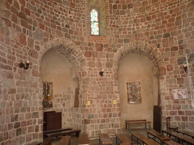 orientowana bazylika z transeptem, prezbiterium zakończone jest apsydą z dwiema kaplicami po bokach (św. Barbary z romańską kolumienką z ornamentem