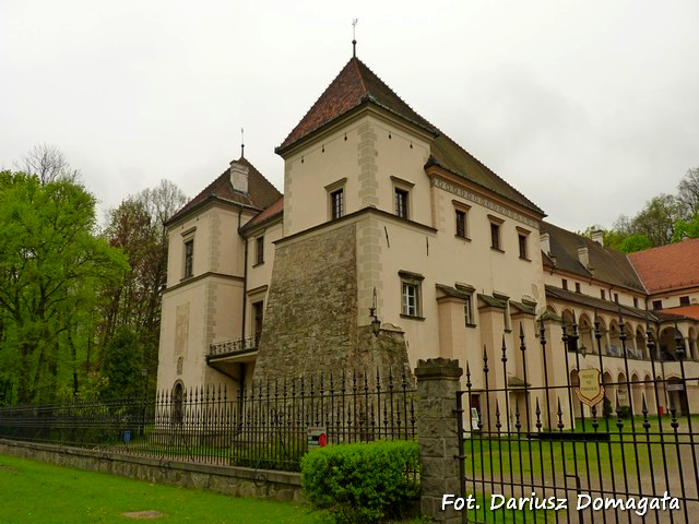 W 1608 roku zamek przeszedł w ręce rodu Komorowskich. Piotr Komorowski dokonał w latach 1608-1614 znacznej rozbudowy budowli w okazałą, renesansową rezydencję magnacką, która uzyskała wtedy swój charakterystyczny trójskrzydłowy układ zachowany do dzisiaj. Dobudowano wówczas dwa skrzydła (południowe (fot.) (fot.) i zachodnie (fot.) (fot.)) z krużgankami od strony dziedzińca (fot.), wieżę zegarową w północnym narożu zachodniego skrzydła (fot.) (fot.) oraz północne skrzydło gospodarcze. W 1655 roku Konstancja Krystyna, córka Krzysztofa Komorowskiego, bratanka Piotra, ostatnia z Komorowskich, wyszła za mąż za kanclerza wielkiego koronnego, Jana Wielopolskiego i dobra przeszły w posiadanie rodu Wielopolskich. Na początku XVIII wieku kolejnej rozbudowy dokonała Anna Konstancja Wielopolska która dobudowała dwie wieże (południowo-wschodnią (fot.) i południowo-zachodnią (fot.)) i zmodernizowała wnętrze zamku. Ród Wielopolskich był w posiadaniu zamku w latach 1665-1843. W 1843 roku zamek kupił Aleksander Branicki. Braniccy zburzyli wysoki mur obronny otaczający zamek, a w jego miejsce postawili ogrodzenie z żelaznych prętów. Zburzono bramę wjazdową od wschodu, a park otoczono kamiennym murem. Syn Aleksandra Branickiego, hrabia Władysław Branicki, w latach 1882-1887 dokonał generalnej restauracji zamku pod kierunkiem architekta Tadeusza Stryjeńskiego. W 1905 roku w wyniku pożaru zamek został poważnie zniszczony, a jego odbudowa przebiegała również pod nadzorem Stryjeńskiego. Braniccy zgromadzili w zamku bogate zbiory muzealno-biblioteczne: obrazy, rzeźby, militaria, monety, archiwalia, rękopisy, starodruki i współczesne im książki. Zbiory biblioteczne liczyły łącznie 55 tysięcy woluminów i zawierały bardzo cenne obiekty (XIII-wieczną biblię pergaminową, 22 inkunabuły oraz 666 XVI-wiecznych tomów wydanych drukiem). Z zasobów biblioteki korzystali m.in. profesorowie Uniwersytetu Jagiellońskiego i Lwowskiego. Niestety, część zbiorów Branickich uległa zniszczeniu podczas II wojny światowej, a część została rozproszona po innych muzeach. W 1922 roku zamek przeszedł w ręce Tarnowskich, którzy byli w jego posiadaniu aż do wybuchu II wojny światowej. Zamek nie został zniszczony w wyniku działań wojennych, jednak jego wyposażenie zostało w dużej części rozgrabione. Po II wojnie światowej zamek pełnił różne funkcje: był siedzibą gimnazjum, internatu liceum, fabryki mebli i magazynu GS. W 1975 roku Państwowe Zbiory Sztuki na Wawelu zdecydowały o otwarciu tu filii muzeum wawelskiego. Rozpoczęto wówczas restaurację i konserwację obiektu, która zakończyła się w 1991 roku. W 1996 roku zamek został przekazany miastu Sucha Beskidzka. Obecnie na zamku mieści się Miejski Ośrodek Kultury "Zamek", Muzeum Miejskie w Suchej Beskidzkiej, prywatna szkoła wyższa oraz hotel i restauracja "Kasper Suski". Zamek jest budowlą trójskrzydłową z otwartym na wschód dziedzińcem (fot.). Posiada cztery wieże wysunięte na zewnątrz. Skrzydła południowe i zachodnie są dwupiętrowe, a skrzydło północne parterowe. Od strony dziedzińca wyższe skrzydła ozdobione są krużgankami (fot.) (fot.). Główną salą na zamku jest Sala Marszałkowska (Rycerska), w której odbywały się uroczystości dworskie. Z dawnego wyposażenia zachował się jedynie kamienny kominek (fot.). W wieży zegarowej znajduje się zamkowa kaplica, której ściany pokrywa słabo zachowana polichromia (fot.). Od południowej strony zamku znajduje się park krajobrazowy z przełomu XVIII i XIX wieku (fot.) (fot.) (fot.). W parku przeważają jesiony, dęby, lipy oraz graby. Środek parku zajmuje spora łąka, a za nią niewielki staw (fot.). Przez park przepływają strumyki, nad którymi przerzucono kamienne mostki (fot.). W parku zachowała się oranżeria, niestety obecnie znajduje się w bardzo złym stanie. Na południowym końcu parku znajduje się tzw. Domek Ogrodnika z XVIII wieku (fot.), w którym mieści się wystawa etnograficzna Muzeum Miejskiego w Suchej Beskidzkiej (fot.) (fot.). Wstęp na zamek jest płatny. Sucha Beskidzka leży w niewielkiej kotlinie na skraju Beskidu Makowskiego i Beskidu Małego, w województwie małopolskim, u ujścia rzeki Stryszawki do Skawy. W 2010 roku miasto liczyło około 9500 mieszkańców. Przez miasto przebiega droga krajowa nr 28 (Zator-Medyka) oraz droga wojewódzka nr 946 (Sucha Beskidzka-Żywiec). Miasto leży w odłegłości około 47 km na południowy-zachód od Krakowa. ----------------------------------------------- Z zamkiem Suskich wiąże się legenda o duchu kobiety pojawiającym się zarówno w pobliżu, jak i na samym zamku. Jest to ponoć duch Anny Konstancji, dwukrotnie zamężnej: po raz pierwszy z Janem Kazimierzem Wielopolskim, a po jego śmierci ze Stanisławem Małachowskim. Po śmierci drugiego męża Anna rządziła swoimi dobrami żelazną ręką, karząc poddanych za najdrobniejsze przewinienia. W asyście uzbrojonych straży wyruszała ubrana w męski strój przeciwko rozbójnikom, a schwytanych bardzo często skazywała na śmierć. Podobno zdarzało się, że osobiście pilnowała wykonywania wyroków śmierci. Po śmierci została pochowana w podziemiach kościoła Nawiedzenia NMP w Suchej, ale wkróce jej duch zaczął pojawiać się na przykościelnym cmentarzu. Wysoka postać kobiety w czarnej krynolinie porusza się po krużgankach zamku, idzie do jednej z komnat i otwiera bezszelestnie drzwi. Po przejściu zjawy czuć dookoła przejmujący chłód. I tak już prawie 300 lat pokutująca dusza Anny Konstancji jako Czarna Pani wciąż niepokoi mieszkańców Suchej... 11.2015 Na podstawie stron internetowych: Muzeum Miejskie w Suchej Beskidzkiej, Zamek Suskich w Wikipedii oraz książki Jerzego Sobczaka Duchy w polskich zabytkach, Sport i Turystyka - Muza SA 2011. Aktualizacja 09.11.2015 |