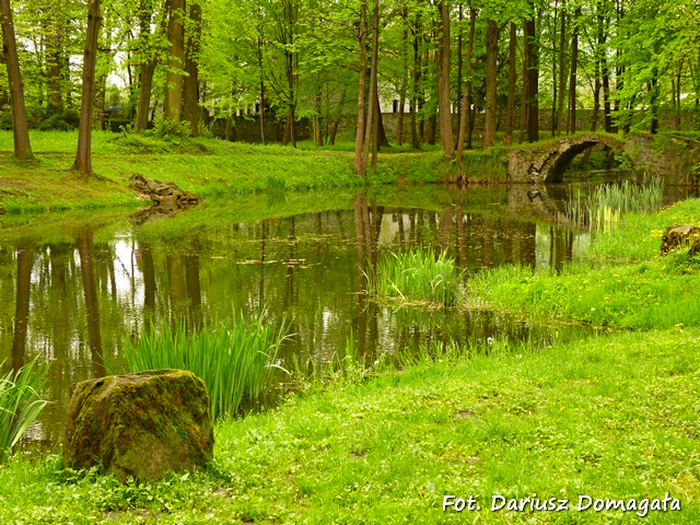 latach 1554-1580 kamienny dwór o charakterze obronnym. Pozostałości tego dworu możemy znaleźć w obecnym południowym
