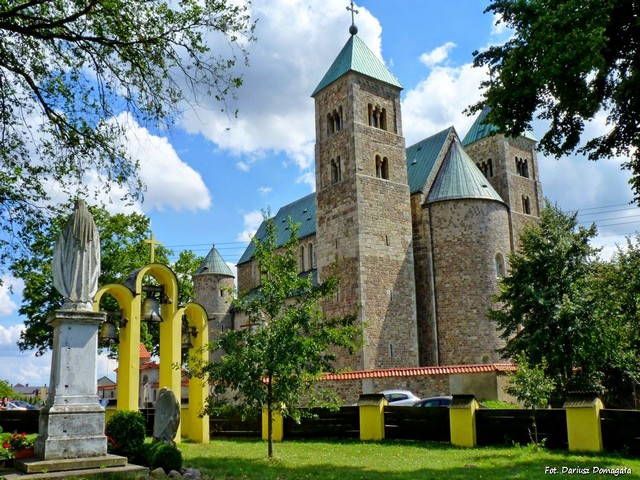 W 1241 roku kolegiata przetrzymała najazd Tatarów. W 1293 lub 1294 roku zdobyli ją jednak Litwini pod wodzą Witenesa, którzy spalili kościół. W 1306 i 1331 roku Łęczycę najechali Krzyżacy. Przez kolejnych kilkadziesiąt lat kolegiata pozostawała zrujnowana. Podczas prac nad jej odbudową częściowo zacierano jej dotychczasowy romański charakter. W 1487 roku, podczas kolejnej odbudowy, pojawiły się zachowane do dziś, gotyckie ostrołukowe arkady i filary międzynawowe z cegły oraz sklepienie krzyżowo-żebrowe w nawach bocznych. W 1569 roku przed wejściem głównym wybudowano renesansową kruchtę osłaniającą romański portal, a we wnętrzu powstały tynki z freskami. Przyjmuje się, że portal powstał około 1160 roku. W półkolistym tympanonie znajduje się Madonna z Dzieciątkiem adorowana przez dwa anioły. Portal schodkowy z kolumnami o okantowanych głowicach ozdobiony jest postaciami zwierzęcymi oraz potrójną archiwoltą z motywami roślinnymi i figuralnymi (fot.). W 1705 roku Łęczycę najechali Szwedzi, przy okazji niszcząc także kolegiatę. W latach 1765-1785 z inicjatywy prymasa Łubieńskiego kolegiata została przebudowana w stylu klasycystycznym. Przebudowano wówczas wieże, główną nawę, zachodnią fasadę oraz okna i wnętrze. W czasie przebudowy powstał również stojący tuż obok niej niewielki drewniany kościół św. Mikołaja (fot.). W 1818 lub 1819 roku car Aleksander I Romanow zarządził kasatę łęczyckiej kapituły i kolegiata straciła swoją rangę. Od tej pory aż do 1915 roku pozostawała kościołem parafialnym. Podczas bitwy nad Bzurą, we wrześniu 1939 roku, w północnej wieży archikolegiaty ukrył się niemiecki obserwator kierujący ogniem artylerii. Artyleria polska ostrzelała kościół likwidując niemiecki punkt obserwacyjny, ale przy okazji zniszczeniu uległa wieża, a w kościele wybuchł pożar. Kolejnych zniszczeń kolegiata doznała po zbombardowaniu przez Luftwaffe. W efekcie z kolegiaty zostały już tylko mury bez dachu, a resztki wyposażenia splądrowano. W 1947 roku rozpoczęto odbudowę kościoła. W lipcu tego roku biskup łódzki odprawił w oczyszczonych z gruzu murach pierwszą po wojnie mszę. Prace budowlane trwały aż kilkanaście lat, a w ich efekcie w nawie głównej dominuje obecnie styl romański, a w nawach bocznych gotyk. Strop nad nawą główną wykonany jest z betonu dla stabilizacji ścian i zapobiegając w ten sposób zawaleniu się starych murów. W czasie remontu, w 1954 roku, odkryto fundamenty znajdującej się pod kolegiatą budowli opactwa benedyktynów. W 800-lecie konsekracji pierwszego kościoła, w 1961 roku, poświęcono trzy ołtarze kościoła i przywrócono go do funkcjonowania. Ze względu na brak funduszy nie wykonano jednak wszystkich prac we wnętrzu kościoła i przez następne lata nie był on w pełni wykończony. W czerwcu 1967 roku, z okazji obchodów Milenium Państwa Polskiego, mszę świętą w kolegiacie odprawił kardynał Karol Wojtyła. 25 marca 1992 roku bullą Totus Tuus Poloniae populus parafia w Tumie włączona została do diecezji łowickiej, a kościół podniesiono do rangi archikolegiaty. W 1993 roku erygowana została ponownie kapituła łęczycka. W tym czasie rozpoczęto też kolejny etap odbudowy kościoła. W 1999 roku sprowadzono z Gniezna do Tumu relikwię św. Wojciecha, a na pamiątkę tego wydarzenia ufundowano ołtarz w nawie głównej, a w ogrodzie otaczającym kościół św. Mikołaja zasadzono poświęcony świętemu Wojciechowi dąb. W latach 1995-2008 przeprowadzono w kolegiacie kolejne prace konserwatorskie. W maju 2011 roku w związku z uroczystościami 850-lecia konsekracji archikolegiaty dokonano uroczystego odsłonięcia kamienia pamiątkowego związanego z rocznicą. Odsłonięcia kamienia dokonali Prezydent Rzeczypospolitej Polskiej Bronisław Komorowski oraz Nuncjusz Apostolski w Polsce arcybiskup Celestino Migliore. Archikolegiata w Tumie jest trójnawową bazyliką bez transeptu z dwiema apsydami umieszczonymi na końcach osi wzdłużnej (fot.) (fot.) (fot.). W zachodniej części znajdują się dwie czworoboczne wieże pomiędzy którymi mieści się apsyda (fot.). Od wschodu znajdują się dwie baszty, przykryte stożkowym dachem (fot.). W apsydzie zachodniej odkryto w 1952 roku polichromię, przedstawiającą pośrodku Chrystusa, po bokach Madonnę i św. Jana oraz postacie tetramorfów (fot.). Poniżej znajduje się pas z popiersiami apostołów. Polichromia datowana jest na XII wiek. Świątynia zbudowana jest z granitowej kostki, natomiast naroża wież i obramowania okien wykonane są z piaskowca. Ponadto w świątyni znajduje się portal gotycki z 1487 roku (fot.), płyty nagrobne kanoników łęczyckich z XV wieku (fot.), płyta nagrobna z wizerunkiem rycerza, stalle gotyckie z XVI wieku (fot.). W nawach bocznych znajdują się galerie triforalne, a w nawie głównej od zachodu duża empora. W 1995 roku odkryto kamień z wyrytą postacią leżącego człowieka. Prawdopodobnie w ten sposób upamiętniono robotnika, który zginął podczas budowy kościoła. Archikolegiatę w Tumie można zwiedzać w sezonie turystycznym, od maja do połowy października. Poza sezonem jest to możliwe po wcześniejszym uzgodnieniu telefonicznym. Kościół znajduje się w miejscowości Tum (gmina Góra Świętej Małgorzaty, powiat łęczycki, województwo łódzkie). Wieś leży w na prawym brzegu Bzury, w odległości około 2,5 km na wschód od Łęczycy. Według danych z roku 2006 Tum liczył około 600 mieszkańców. ----------------------------------------------- Z kolegiatą w Tumie związane są różne legendy. Oto jedna z nich... Bohaterem tej legendy jest słynny diabeł Boruta :-) Pewnego dnia Boruta ujrzał piękną dziewczynę i chociaż diabłu to nie przystoi, zakochał się do szaleństwa. Sprytna dziewczyna szybko zorientowała się kim jest jej adorator i postanowiła to wykorzystać. Poprosiła żeby B