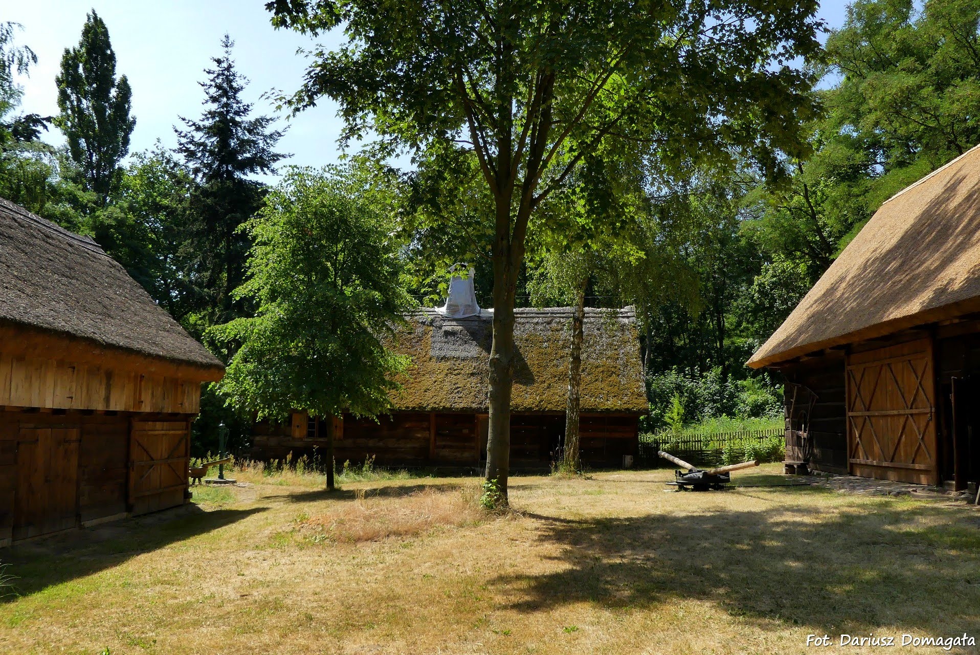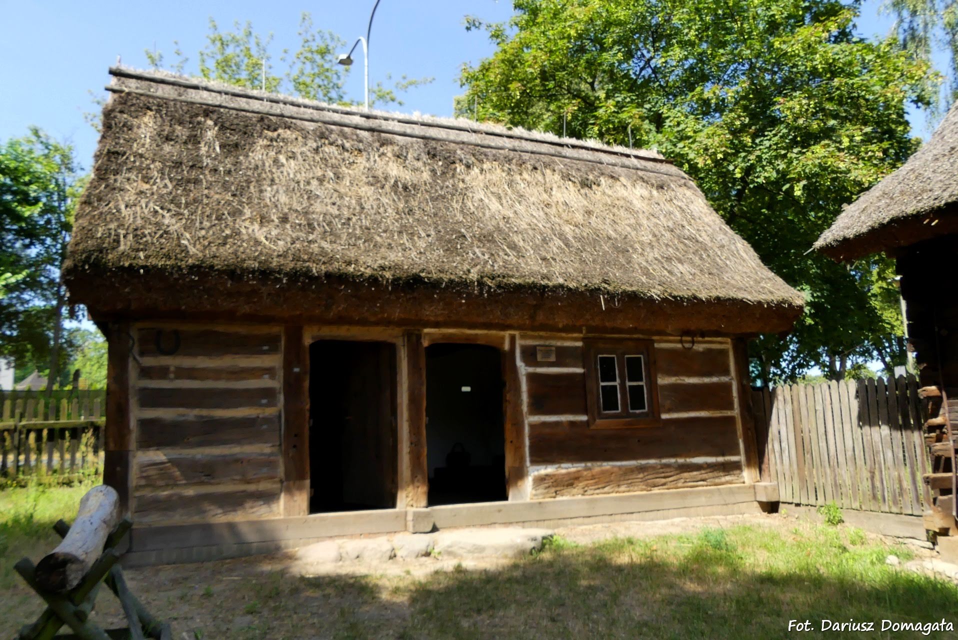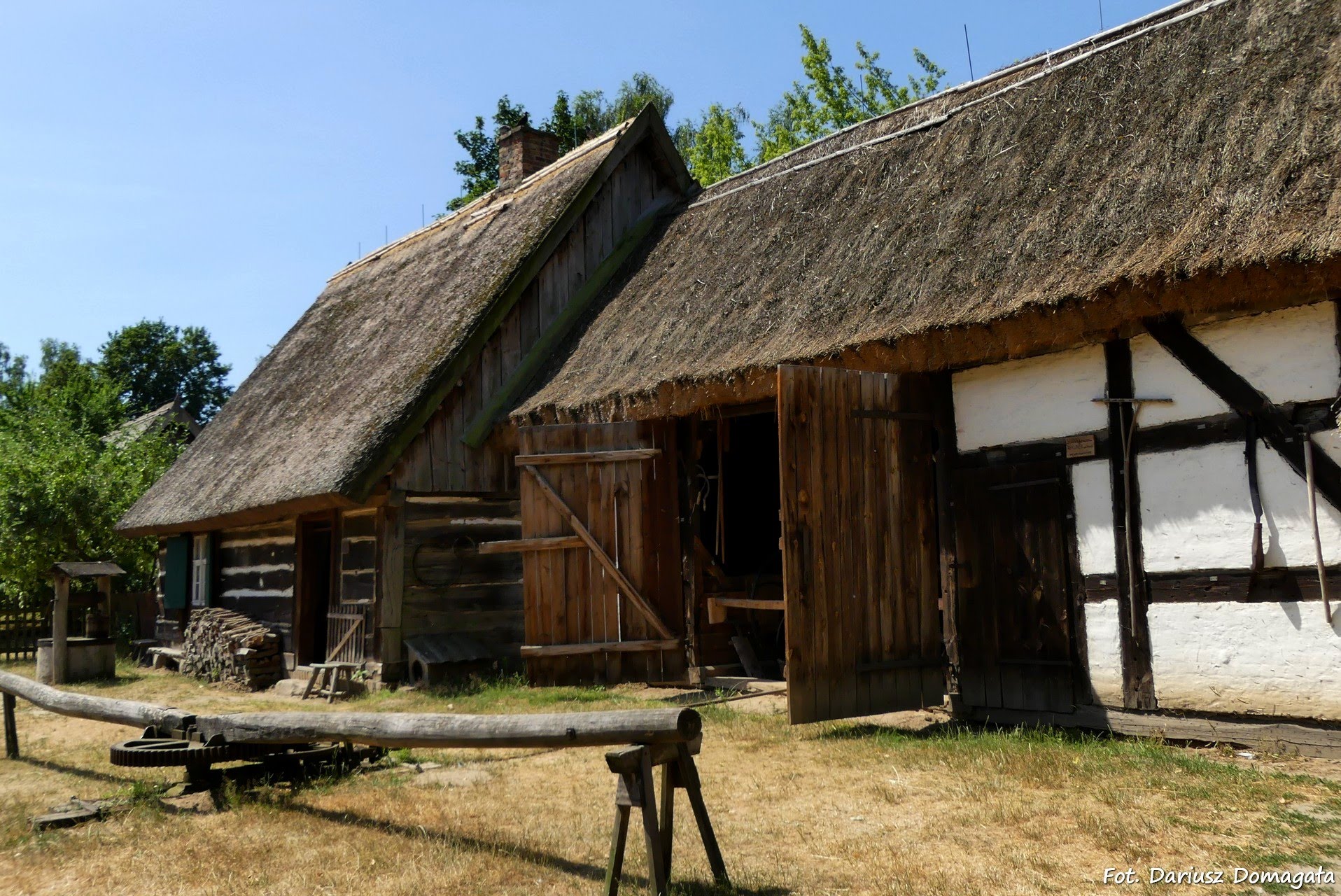 mała architektura, taka jak piec chlebowy, gołębnik czy psie budy. Ekspozycja w skansenie przedstawia przekrój przez całą