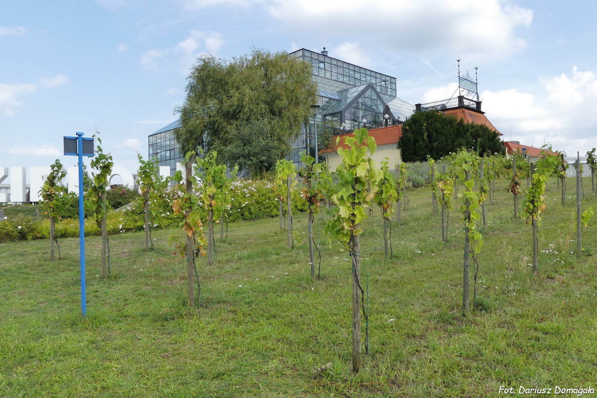 Wokół budynku znajduje się Park Winny z pokazową winnicą.