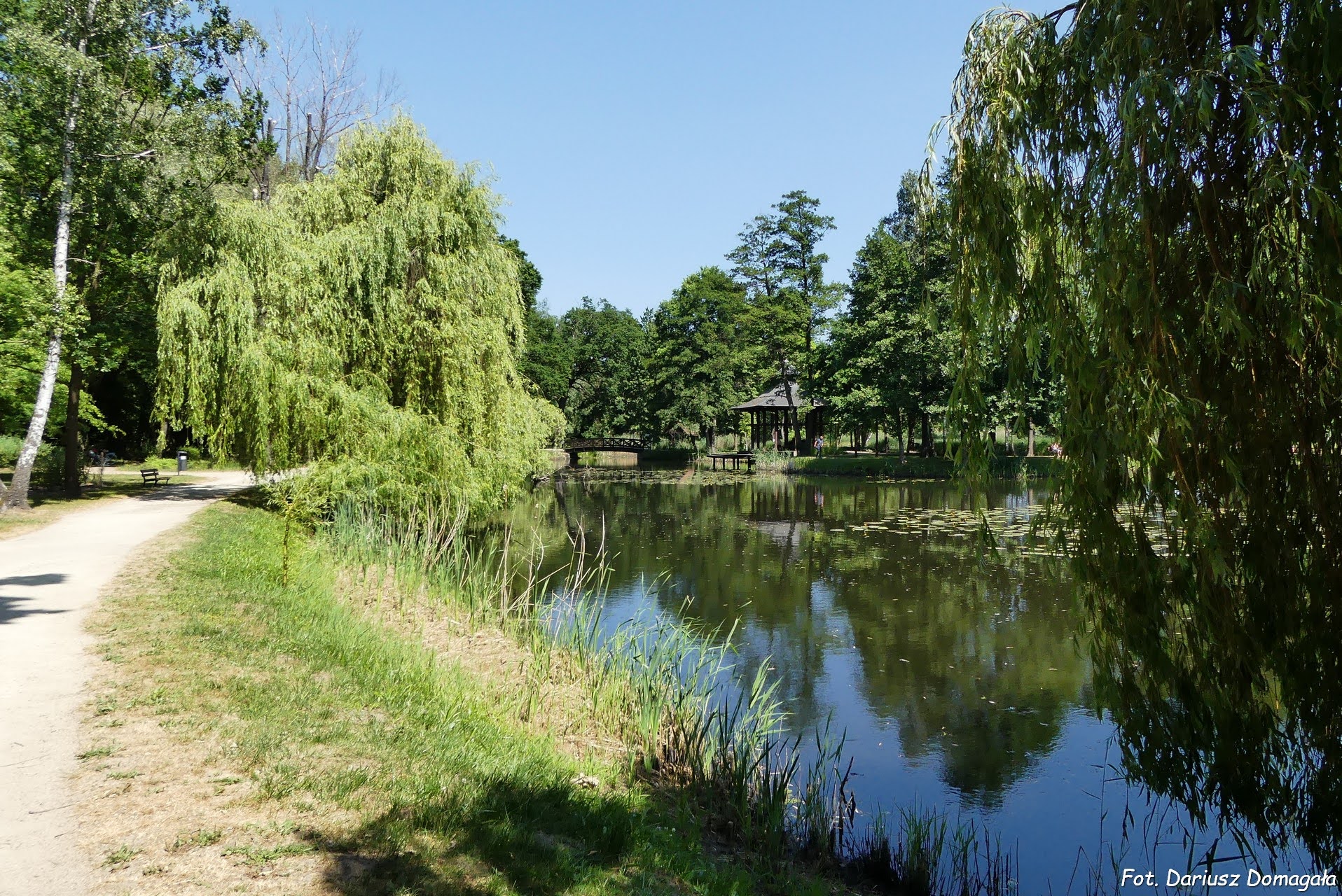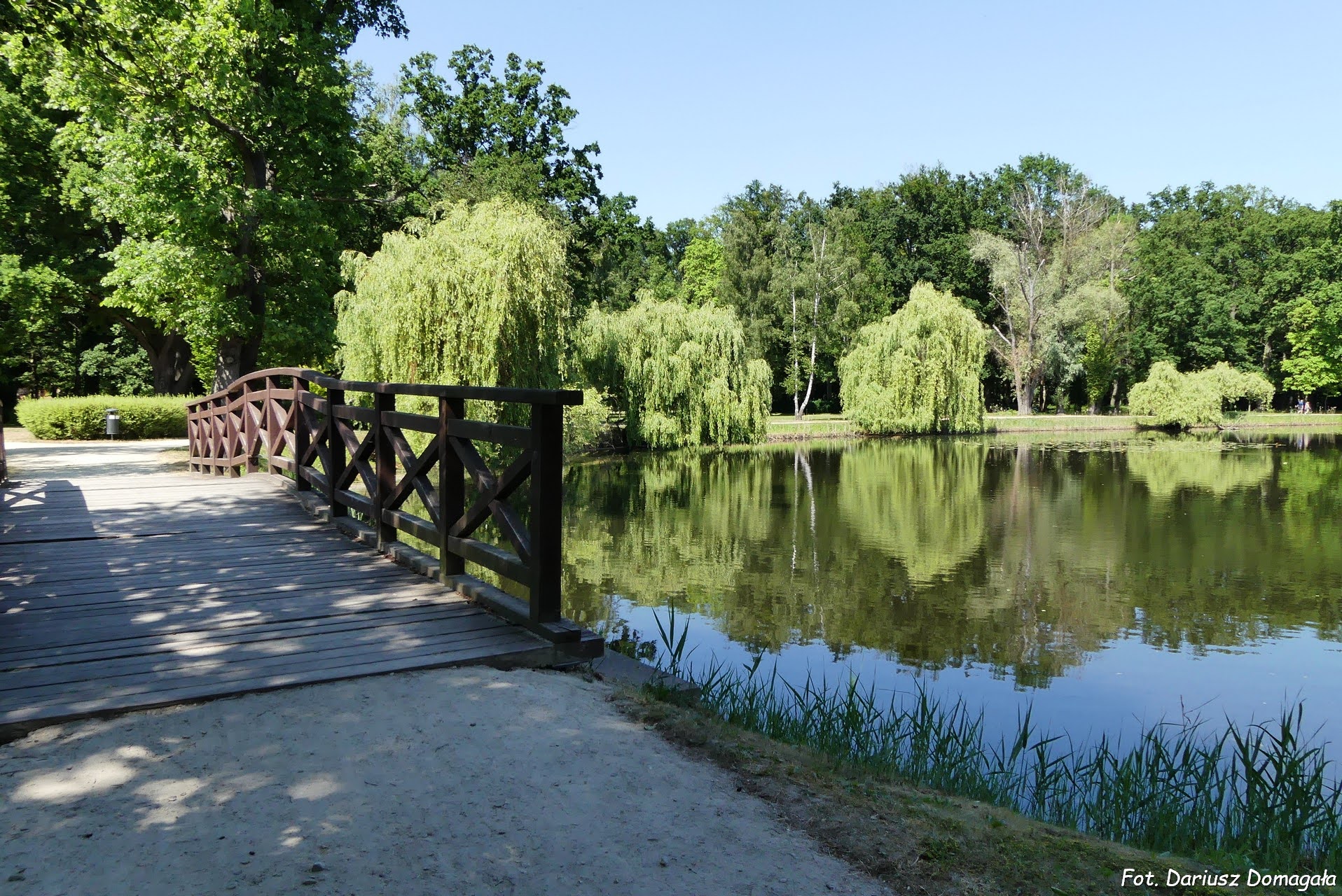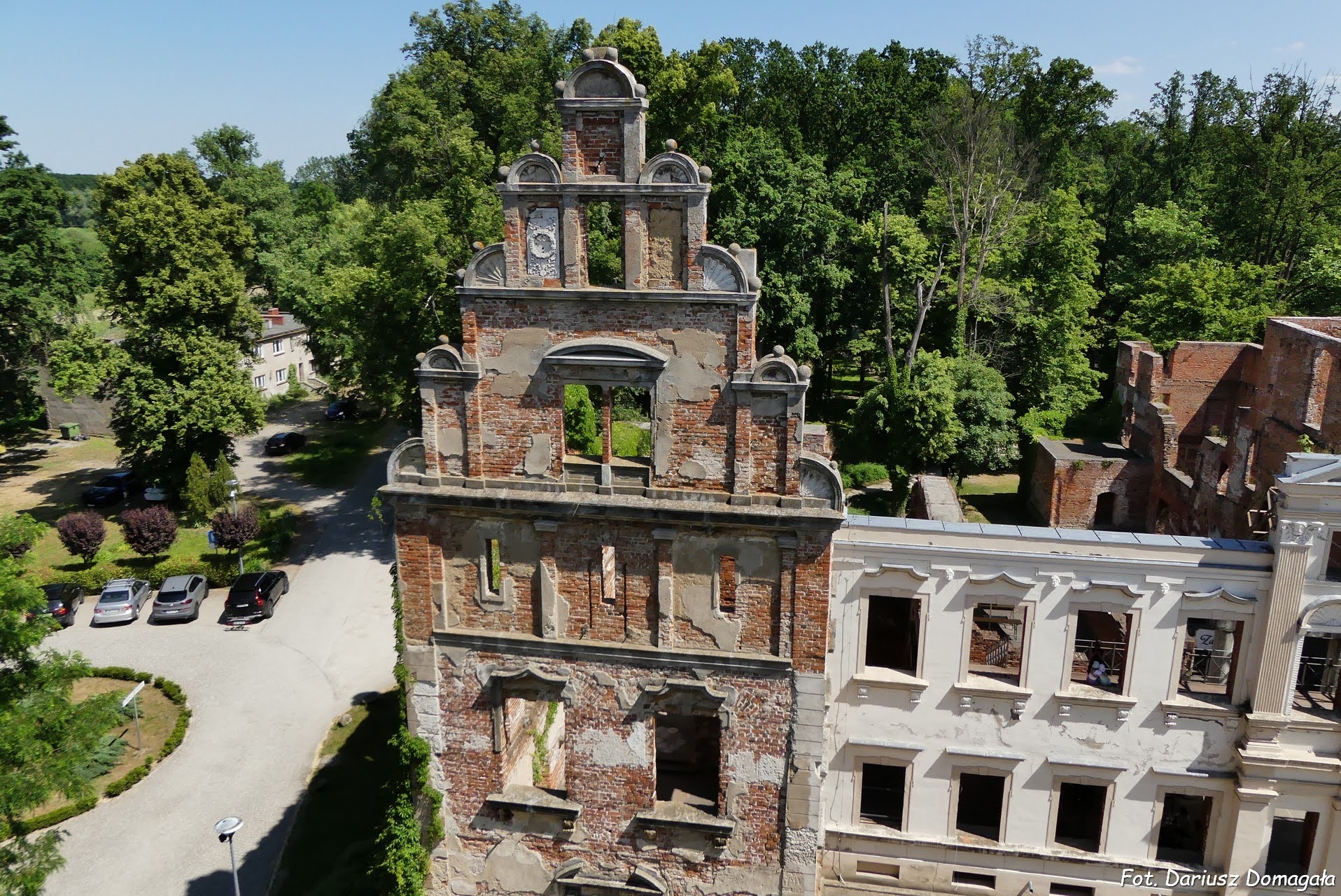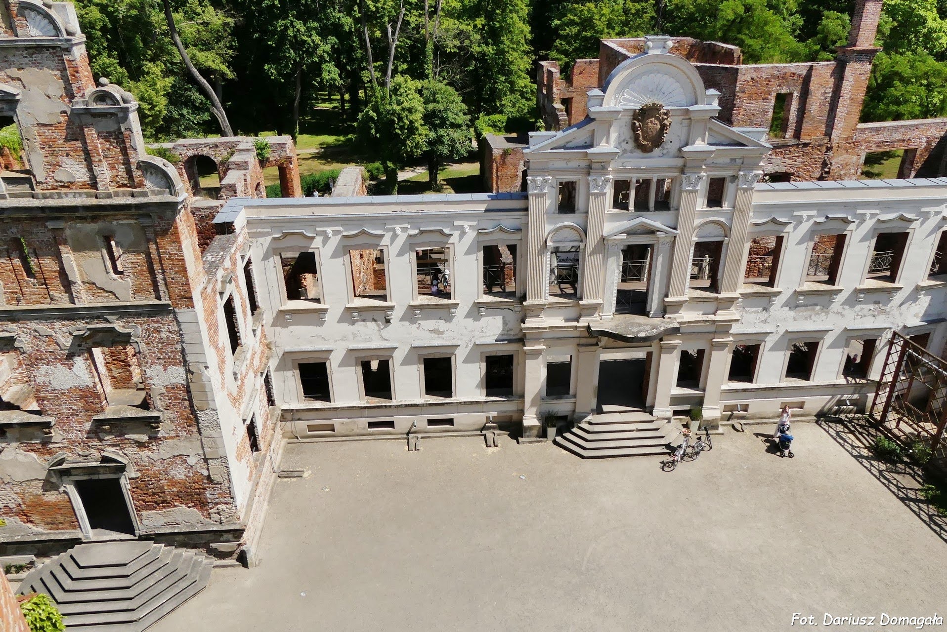 W 1592 roku, Heinrich von Kurtzbach, syn Wilhelma, sprzedaje dobra Adamowi von Schaffgotsch. Majątek pozostaje w rękach Schaffgotschów do 1635 roku, kiedy za udział w spisku w spisku przeciwko Habsburgom, cesarz Ferdynand III konfiskuje dobra żmigrodzkie i przekazuje austriackiemu feldmarszałkowi Melchiorowi von Hatzfeld. W 1642 roku zamek zajmują wojska szwedzkie, które przebywają tutaj aż do 1650 roku. Zamek służy im wówczas jako baza wypadowa na Śląsk. Szwedzi w tym czasie nadbudowują wieżę o jedno piętro. W latach 80-tych XVII wieku von Hatzfeldowie burzą fortyfikacje i przebudowują średniowieczny zamek w pałac. Jako pierwszą, w 1683 roku, Heinrich von Hatzfeldt wznosi przypałacową kaplicę św. Jerzego. W latach 1706-1708 powstaje główny korpus pałacu. Nowy pałac staje się rezydencją trójskrzydłową nakrytą mansardowym dachem z wieżyczką i pełnymi przepychu wnętrzami. W latach 1762-1765 dobudowane zostaje okazałe skrzydło południowe. W środkowej części tego skrzydła znajdowała się tzw. "Wielka Sala" z wielką kopułą pokrytą cynową blachą o czerwonym odcieniu. W lipcu 1813 roku w pałacu w Żmigrodzie, na zaproszenie księcia Franza Ludwiga von Hatzfeld, spotykają się m.in.: car Rosji Aleksander I, król pruski Fryderyk Wilhelm III, następca tronu szwedzkiego Jan Karol i poseł angielski lord William Carthart. Dostojnicy opracowują tu plan wojenny, znany jako protokół żmigrodzki, który w październiku 1813 roku doprowadził pod Lipskiem do rozbicia wojska Napoleona. W latach 1874-1875 w tylnej części barokowego skrzydła dobudowano rząd pokoi. Ponadto barokowej fasadzie tego obiektu nadano obecnie widoczny wystrój neorenesansowy. W rękach von Hatzfeldów pałac pozostaje aż do zakończenia II wojny światowej. Po zajęciu rezydencji przez armię sowiecką zostaje ona podpalona i kompletnie zniszczona. W latach 70-tych XX wieku władze miejskie podejmują decyzję o rozebraniu pozostałości skrzydła południowego. Lepsze lata nadchodzą w XXI wieku, kiedy to w latach 2007-2012, w dużej mierze dzięki funduszom unijnym, ruiny pałacu zostają odnowione i zabezpieczone, wyremontowana zostaje wieża i uporządkowany pałacowy park. Obecnie pałac w Żmigrodzie ma status trwałej ruiny, jest zabezpieczony i odnowiony (fot.) (fot.) (fot.). Wyeksponowano zachowane detale architektoniczne, pojawiły się tablice z fotografiami, które pokazują jak wyglądały dawniej pomieszczenia pałacu. Nieistniejące dziś skrzydło południowe symbolizuje metalowy trejaż porośnięty różanymi krzewami (fot.). Po gruntownym remoncie wieży (fot.) (fot.) umieszczono tam Punkt Informacji Turystycznej "Baszta", niewielką wystawę historyczną, salę konferencyjną, apartament hotelowy oraz otwarty taras widokowy (fot.) (fot.), z którego możemy podziwiać zachowane ruiny pałacu (fot.) (fot.). Do spacerów zachęca przypałacowy 5 hektarowy park (fot.) (fot.) (fot.) z trzema stawami (fot.) (fot.), fontanną, elementami małej architektury i dwoma mostkami (fot.) (fot.) (fot.). W parku rośnie wiele starych drzew, wśród których zwraca uwagę olbrzymi dąb "Melchior" o średnicy pnia ponad 6 metrów (fot.). Dąb liczy sobie około 390 lat. Wstęp do wieży jest płatny, pozostałe części zespołu można zwiedzić bezpłatnie. Zespół pałacowo-parkowy Hatzfeldów znajduje się w miejscowości Żmigród, w powiecie trzebnickim, województwie dolnośląskim. Miasto leży nad rzekami Baryczą i Sąsiecznicą. Przez miasto przebiega droga ekspresowa S5 oraz droga wojewódzka nr 359. Żmigród leży w odległości około 50 km na północ od Wrocławia. Według danych z 2023 roku Żmigród liczył nieco ponad 6000 mieszkańców. ------------------------------------------------------------------------------------------------------------ W ruinach pałacu w Żmigrodzie można spotkać rzeźbę sympatycznego smoka (fot.). To jeden z kilku smoków znajdujących się w mieście i tworzących Szlak Żmigrodzkich Smoków. Obecność smoków w Żmigrodzie nie jest przypadkowa, wiąże się bowiem z nimi legenda... Otóż dawno, dawno temu w miejscu dzisiejszego miasta istniała niewielka osada zwana Żmigródkiem. Nie były to łatwe czasy dla mieszkańców, bowiem po drugiej stronie rzeki Baryczy, na wzgórzu zwanym Smoczą Górą, mieszkał potwór. Był to wielki wąż ze skrzydłami i łbem smoka, który hipnotyzował wzrokiem i pożerał swoje ofiary. Co drugi dzień ludzie musieli zanosić w pobliże smoczej kryjówki barana, kozę, owcę czy świnię, aby nakarmić straszną bestię. W wiosece mieszkał chłopiec imieniem Maryś Ciżemka. Chłopiec cały czas zastanawiał się jakby tu zabić smoka. W końcu kazał sołtysowi pozbierać od mieszkańców sól, z którą poszedł do lasu do zielarki. Zielarka przygotowała specjalną miksturę. Kiedy przyszła pora nakarmienia smoka ludzie podsunęli mu trzy gęsi wypełnione przygotowanym przez zielarkę napojem. Napar okazał się skuteczny - gdy po kilku dniach śmiałkowie zajrzeli do smoczej jamy, ujrzeli tam nieżywego smoka z pękniętym brzuchem. Mijały lata, przybyli tu koloniści, założyli osadę w pobliżu Żmigródka i nazwali ją Drachenberg, czyli Smocza Góra. Później nazwę zmieniono na Trachenberg, a po polsku, na pamiątkę tych wydarzeń osadę nazwano Żmigród. Więcej żmigrodzkich legend można znaleźć tutaj. 02.2024 Na podstawie stron internetowych: Pałac w Żmigrodzie w Wikipedii oraz www.zamkipolskie.com - pałac w Żmigrodzie. Aktualizacja 17.02.2024 |
