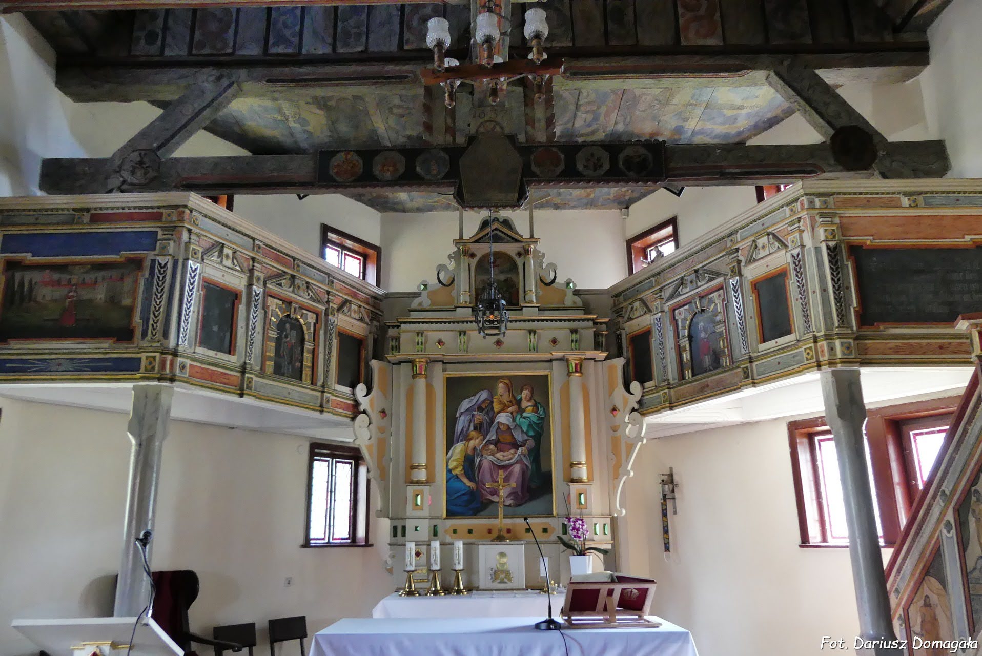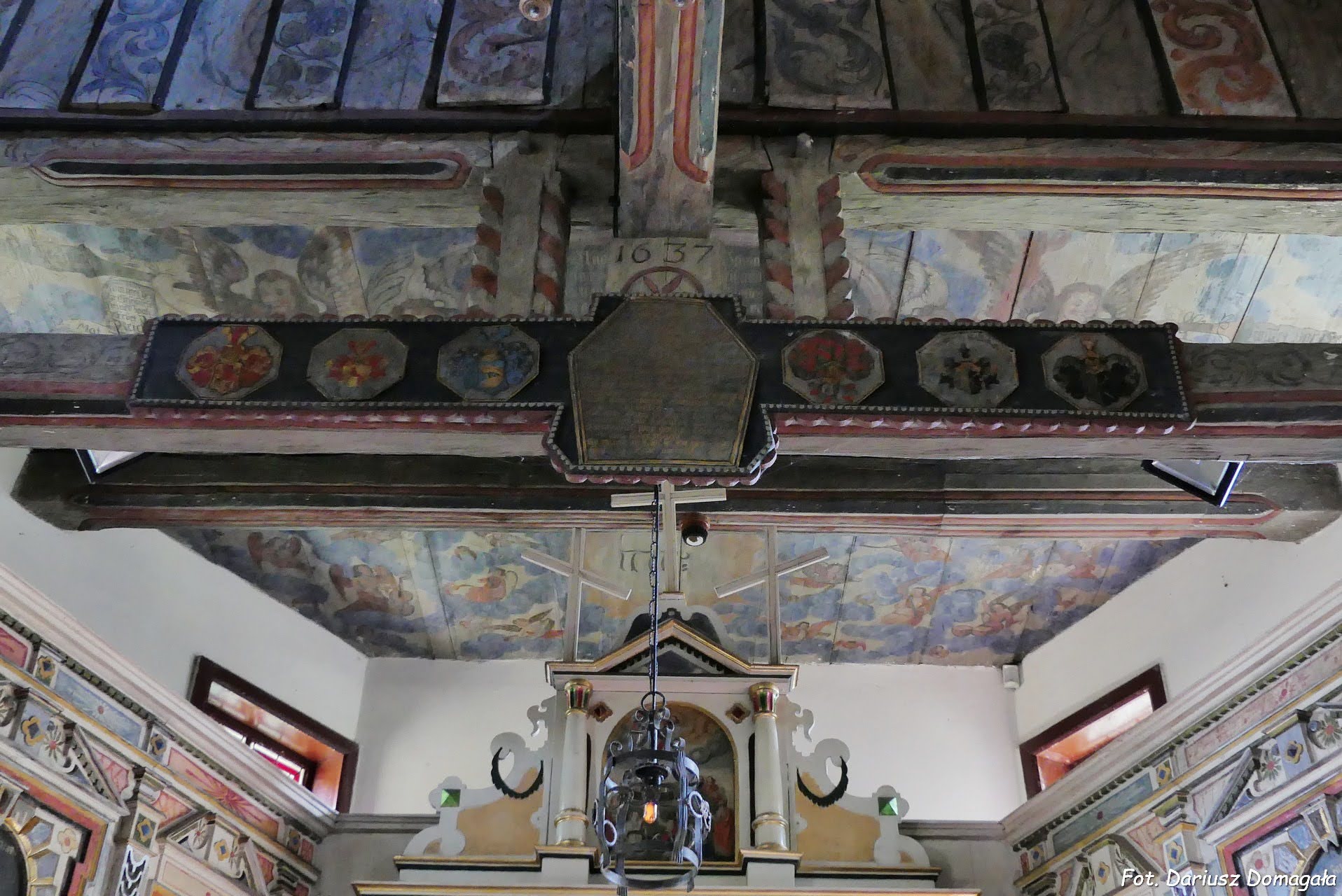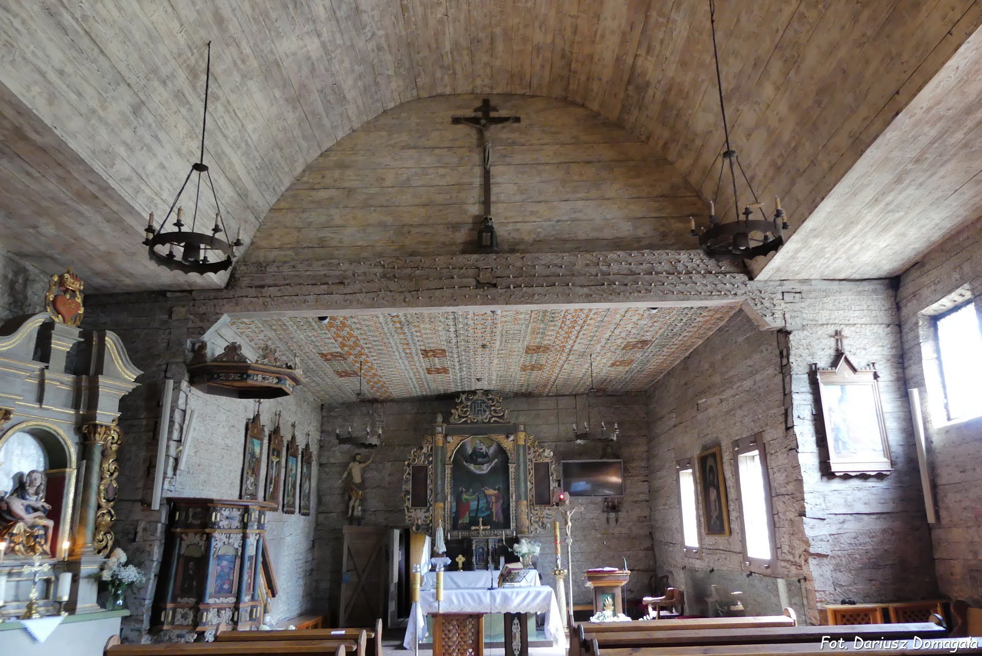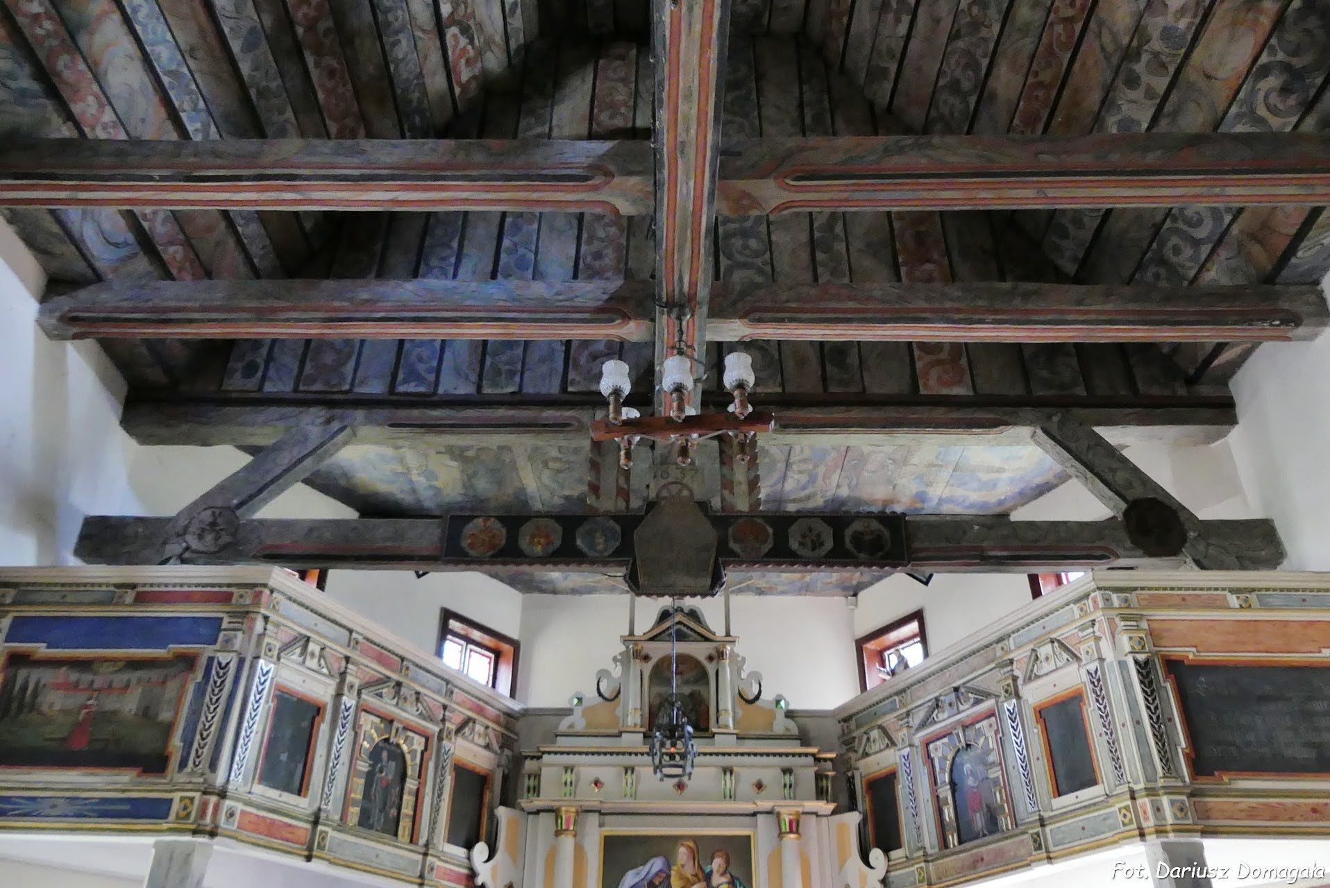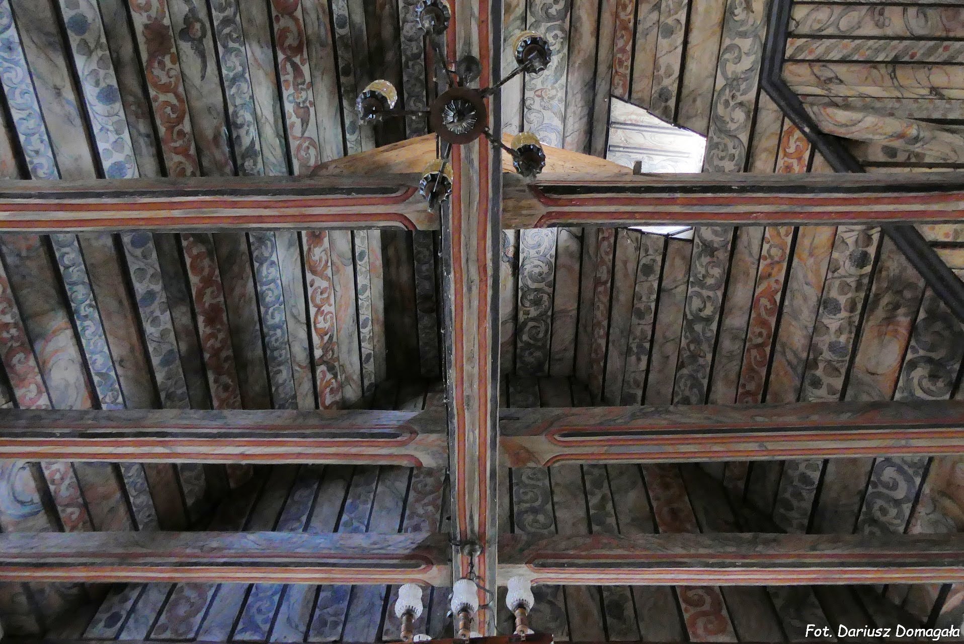 prezbiterium) wybudowano z belek sosnowych w konstrukcji wieńcowej w 1389 roku. Natomiast więźba dachowa (nad nawą i prezbiterium)
